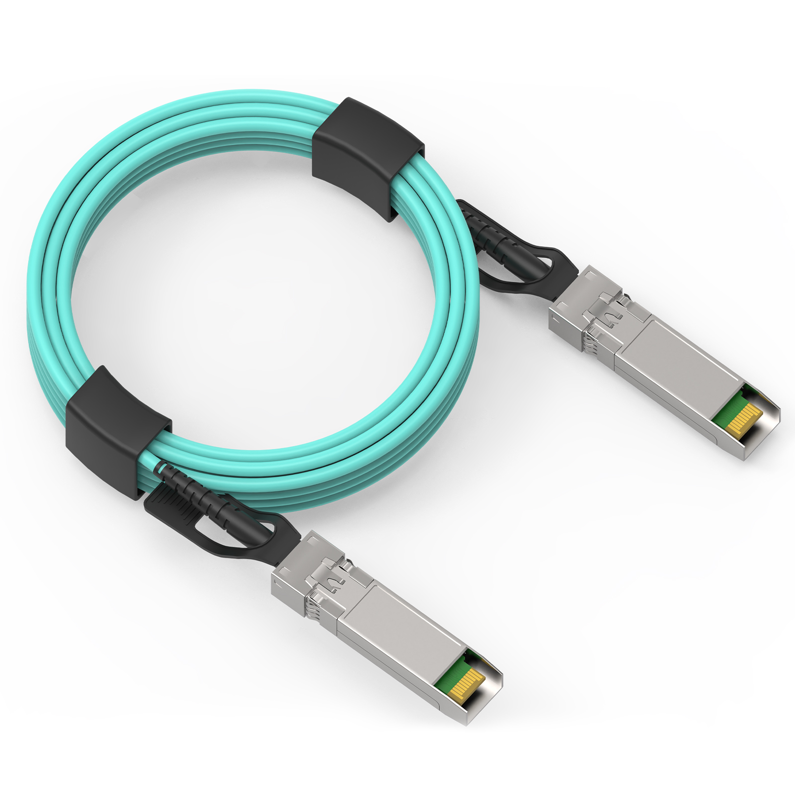 SFP+ Active Optical Cables are direct-attach fiber assemblies with SFP+ connectors.They are suitable for very short distances and offer a cost-effective way to connect within racks and across adjacent racks. FlyinFiberSFP+ Active Optical Cables’s length is up to 300 meters on OM3MMF 850nm 1-100m,