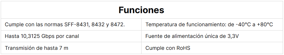 Los conjuntos pasivos de cable SFP+ son soluciones de E/S de alto rendimiento y rentables para aplicaciones Ethernet 10G y Canal de Fibra 10G. Los módulos de cobre SFP+ permiten a los fabricantes de hardware alcanzar alta densidad de puertos, configurabilidad y utilización con una fundición muy baja y un presupuesto de energía reducido. Los conjuntos de cables de alta velocidad cumplen y superan los estándares de la industria Gigabit Ethernet y Fiber Channel en cuanto a rendimiento y fiabilidad.