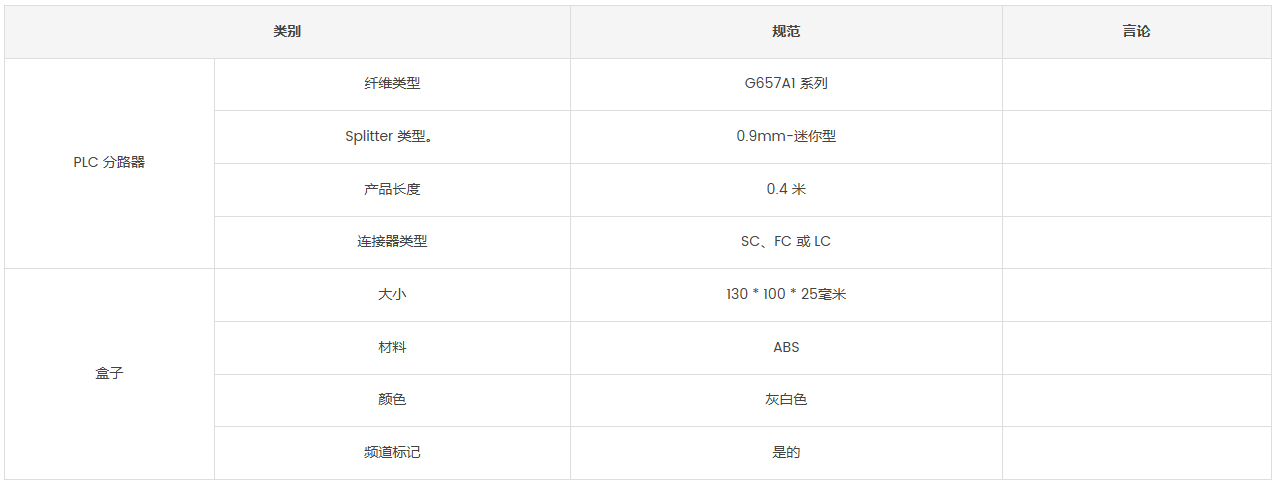 4. 分路器适配器类型:SC/UPC、SC/APC