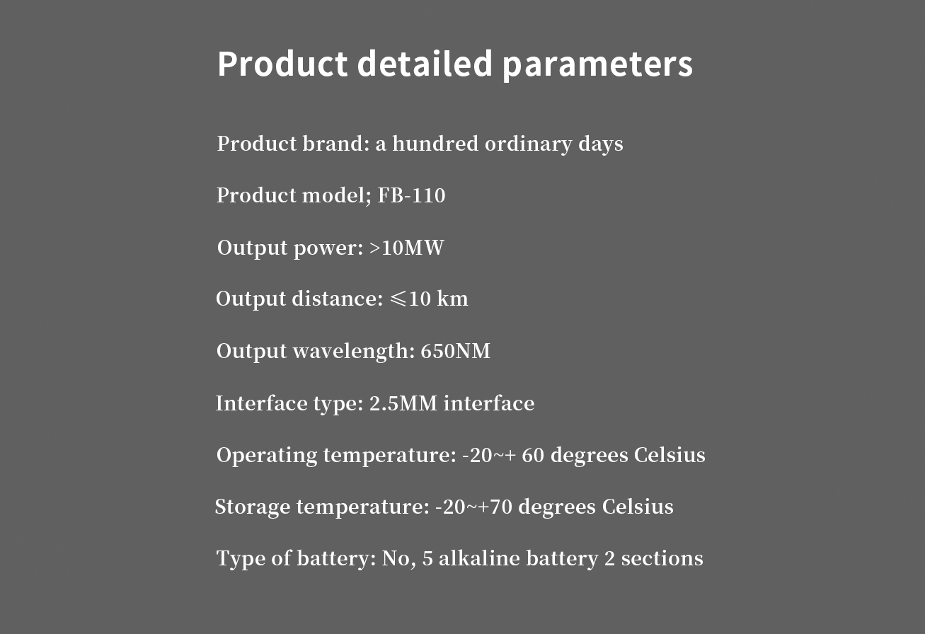 -长工作时间: 使用有效的激光驱动电路,以确保1mW/650nm定位器可以连续工作60小时以上。