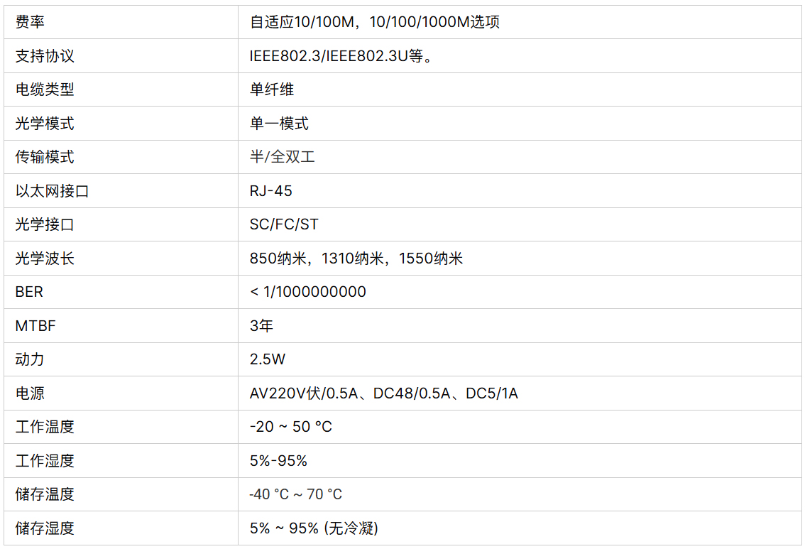 IEE802.3z/AB 1000Mbps 3端口千兆以太网交换机支持两种类型的网络连接和交换介质,如10/100/1000Base-T和1000Base-SX/LX。该开关设计有开关控制器和缓冲存储器,连接两种类型的段以平稳运行。开关与段平稳运行。具有2个RJ45端口10/100/1000Base-T和1个SC端口1000Base-SX/LX的交换机。所有10/100/1000 Mbps RJ45端口都支持半双工或全双工模式。所有SFP端口仅支持1000 Mbps和全双工模式。带有外部电源装置。它提供了良好的稳定性和可靠性。