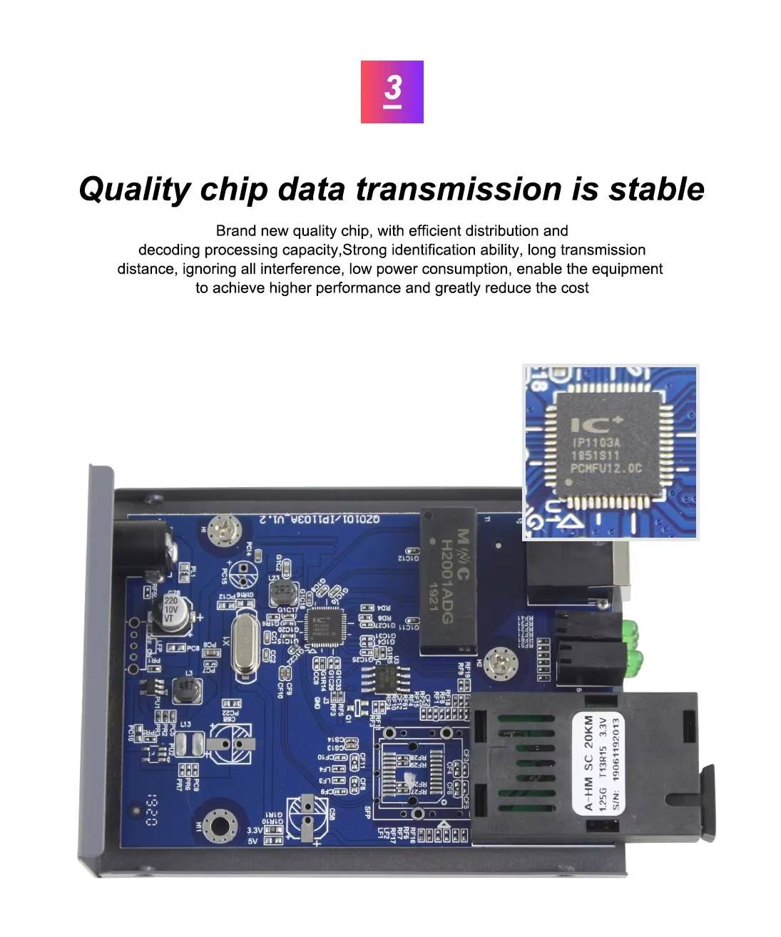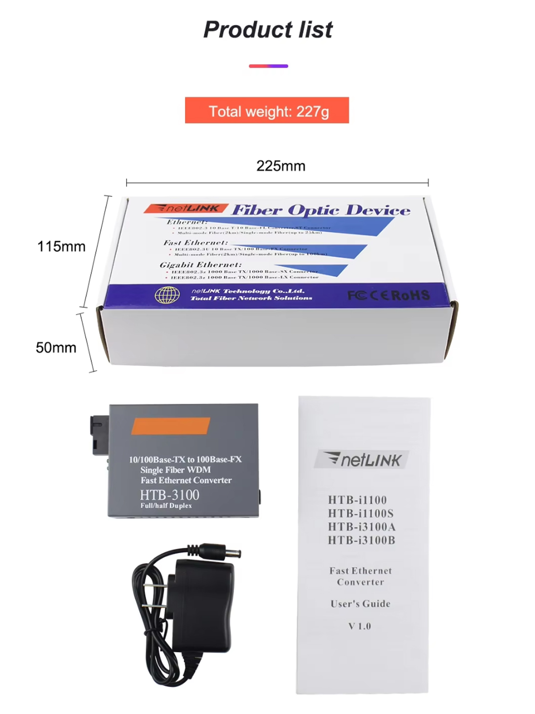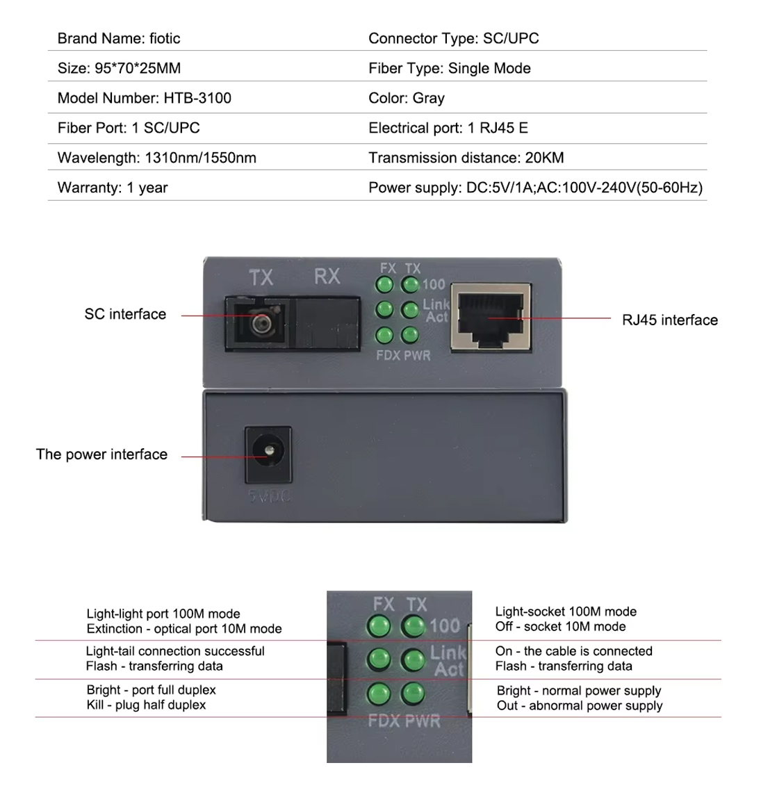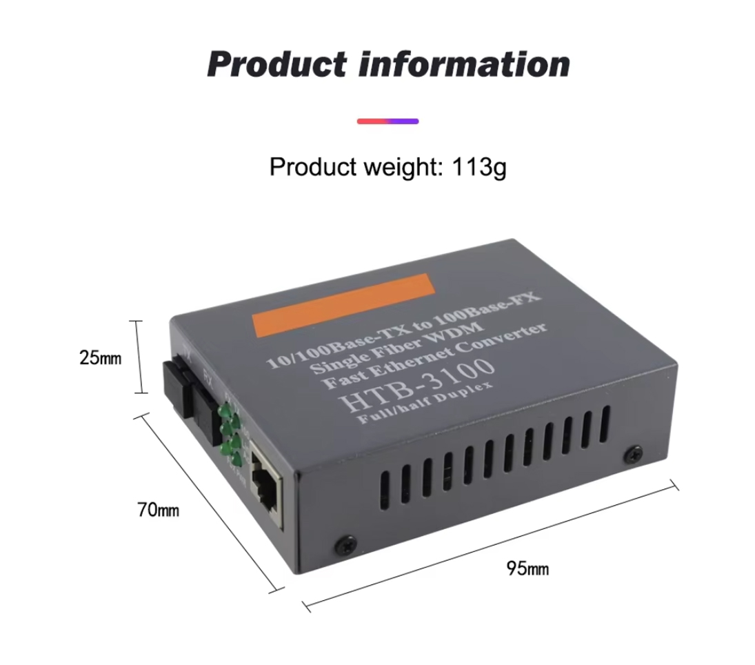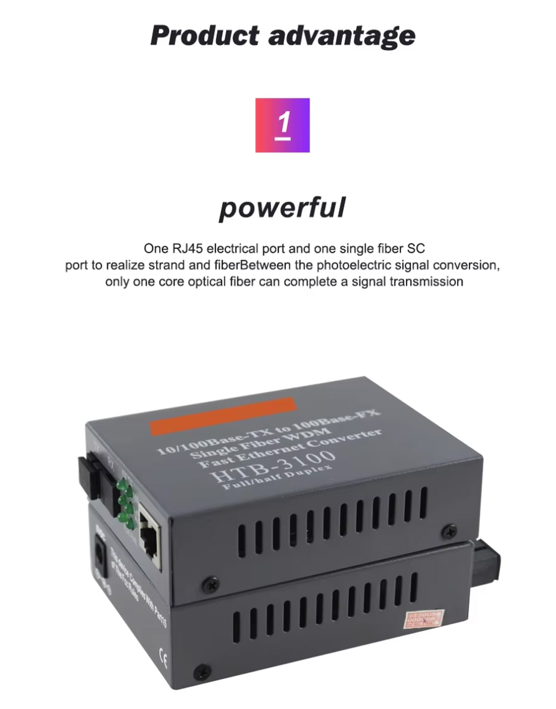 配备的自动协商功能使媒体转换器能够以10或100Mbps的铜以太网或快速以太网和100Mbps光纤运行。此转换符合IEEE802.3和IEEE802.3u标准与两种不同的网络连接介质,10/100Base -TX和100Base-FX。通过交换和存储转发技术实现数据传输。