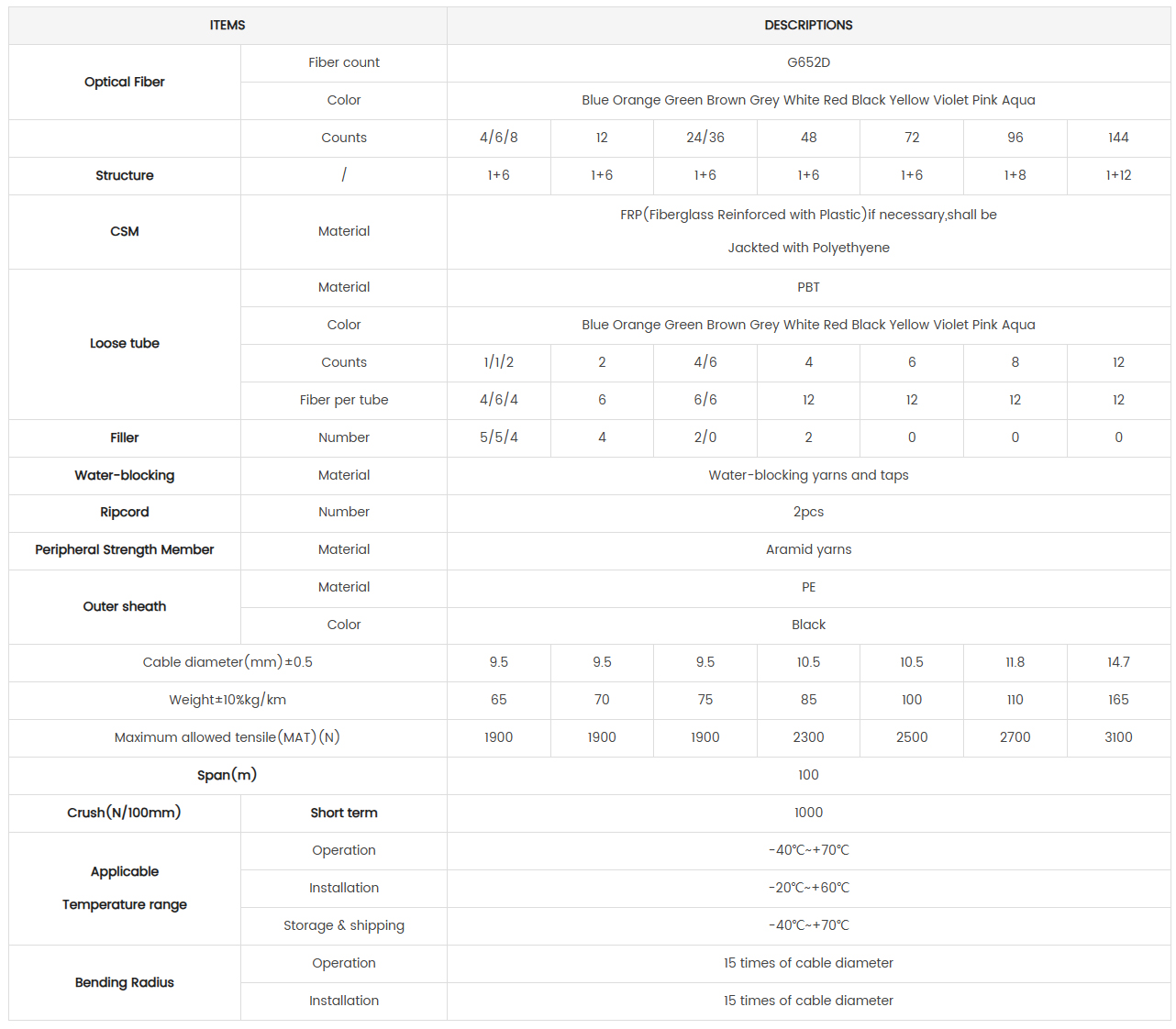 5. The precision control of the fiber length and the cable‘s twisted pitch ensure that the fiber cable has excellent tensile performance and temperature characteristics.