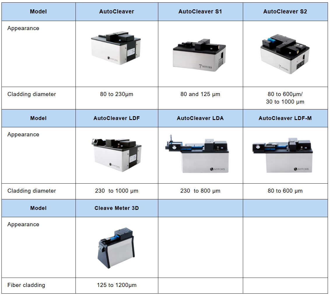 The AutoCleaver series is a comprehensive product platform with various models for cleaving standard and large diameter optical fibers. Different models are carefully optimized for precision cleaving of standard, specialty, and large diameter fibers with cladding diameters between 80 and 1000 micrometers.