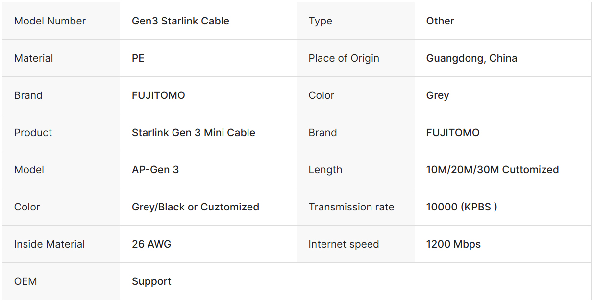 Starlink Mini Cable Gen 3 Cable Starlink Ethernet Mini Charging Cable 10G