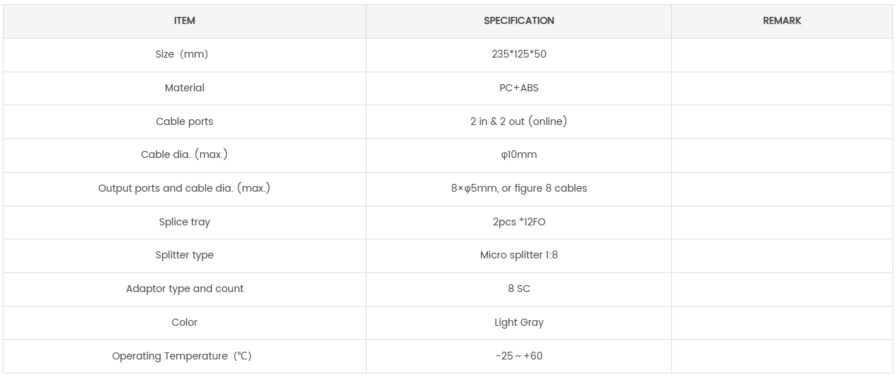 Fiber Optic Distribution Box 8 Ports ABS FTTH Termination Box Features: