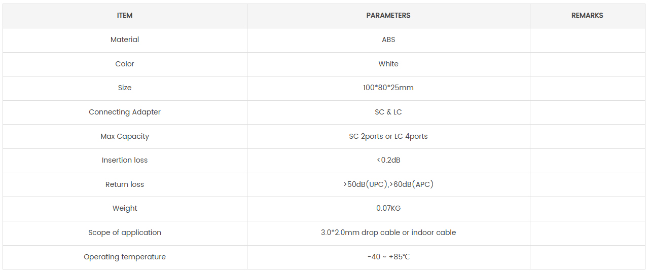 Fiber Optic Panel Box 4 Ports FTTH Fiber Optical Information Box Specifications: