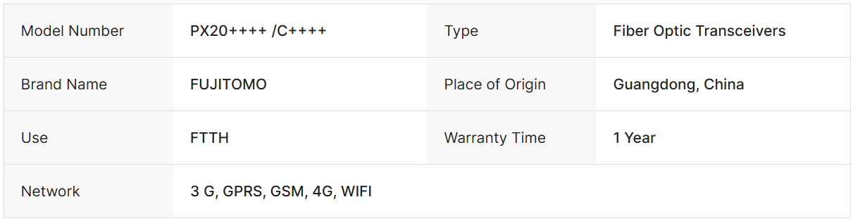 Feature highlights: The OLT SFP 20KM SC Optical Transceiver Module supports 2.5G speeds and offers a range of output power options from 7dB to 10dB, suitable for GPON and EPON applications. With a warranty of 1 year and OEM support, it ensures reliable performance for FTTH fiber optic setups.