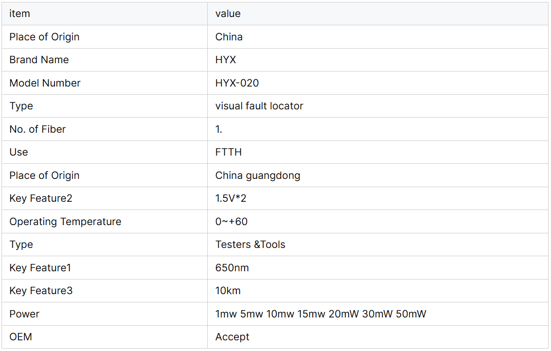 650nm visual fault locator has the function of fiber identification and faults locator of SM or MM fiber, it is a helpful assistant to dead zone of OTDR, it is also a basic maintenance tool for fiber network, LAN, ATM fiber system and telecom network system.