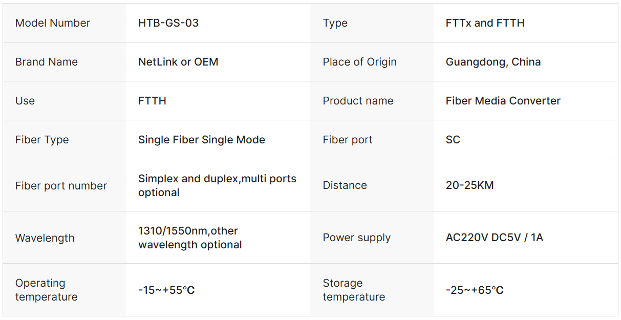 Fiber Optic Ethernet Media Converter netlink 10/100M HTB-1100s