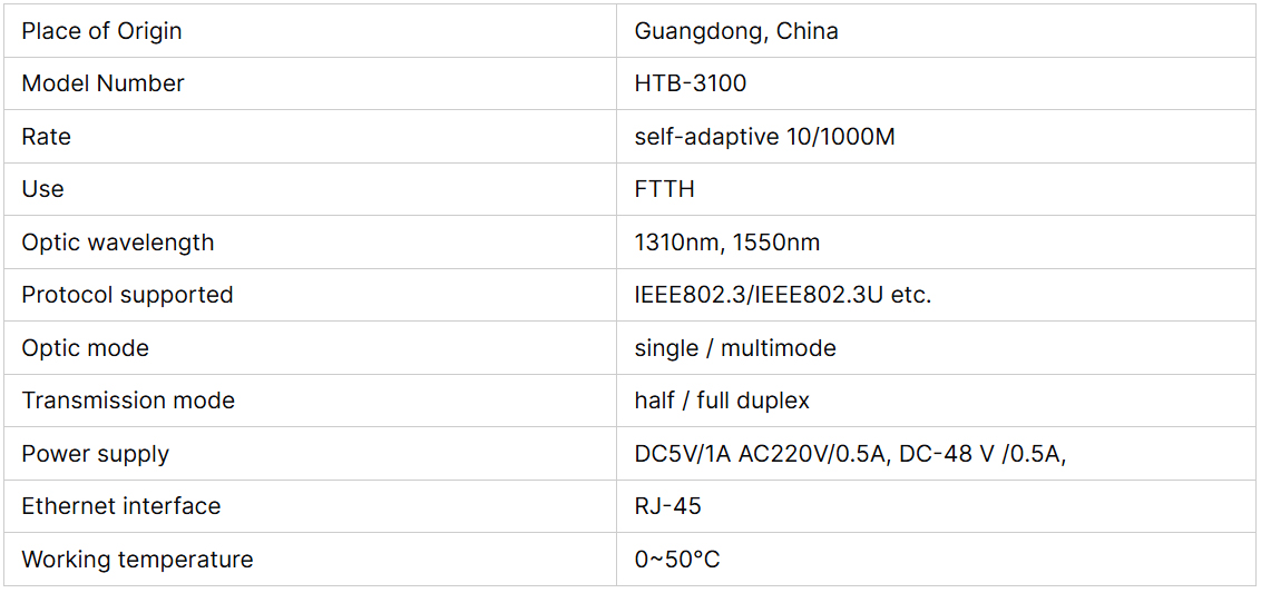 The equipped auto-negotiation function enables the media converters to operate at 10 or 100Mbps copper Ethernet or Fast Ethernet and the 100Mbps fiber. This conversion complies with IEEE802.3 and IEEE802.3u standards with two different network connection media, 10/100Base -TX and 100Base-FX. The data transmission is realized by switching and store-and-forward technologies.