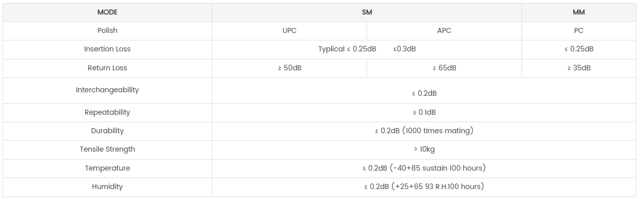 6. Repeat plug: < 0.25 dB, each 500 times plug