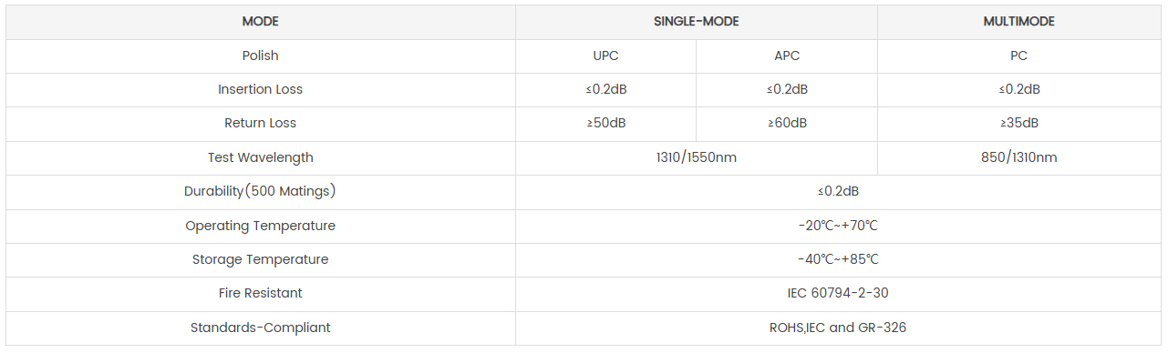 1. Connector type: FC, SC, LC, ST, MTRJ, MU, E2000, MPO, DIN, D4, SMA