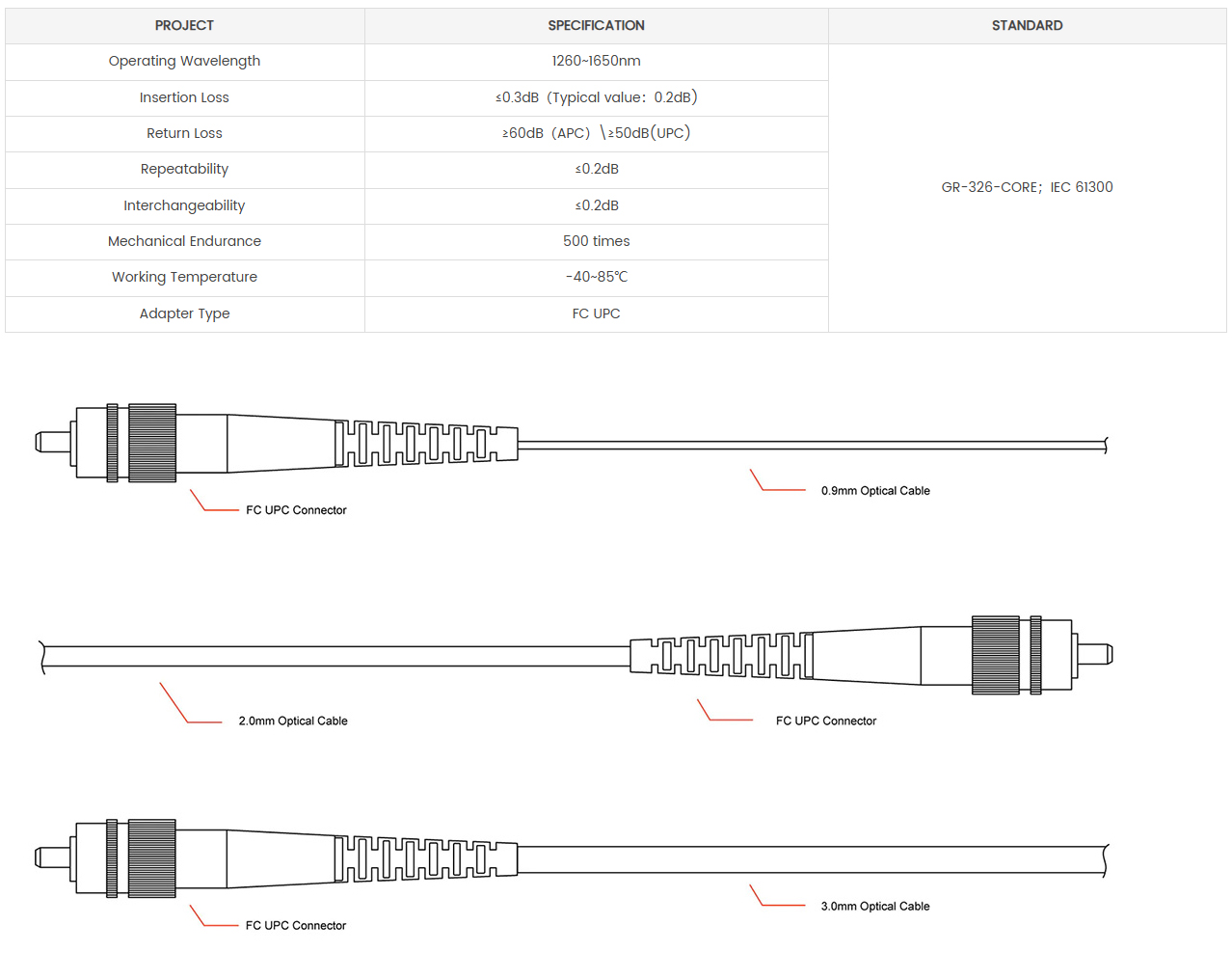 Cable Diameter: 0.9 mm( as default)、 2.0mm 、3.0mm