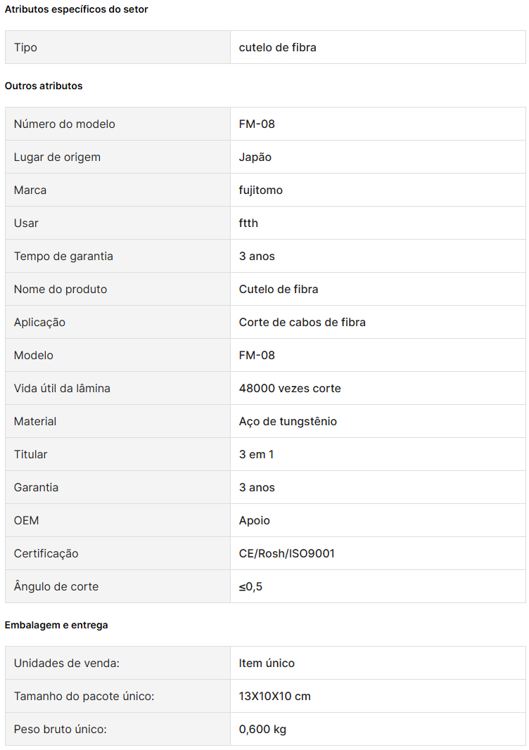 Cutelo de fibra óptica FM-08 Cutelo de fibra de alta precisão original Fujitomo FM-08 Cutelo de fibra óptica