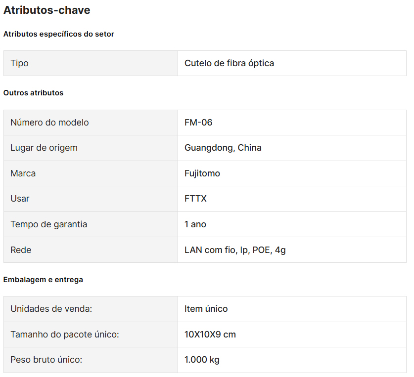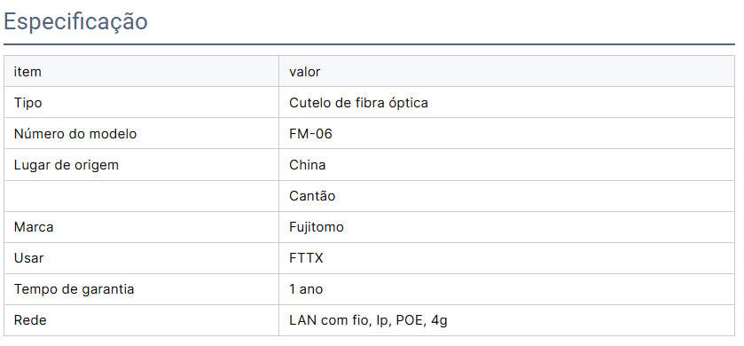É um cortador de fibra óptica multiuso, o produto usa os 24 pontos de corte e tem uma vida útil mais longa O cutelo de alta