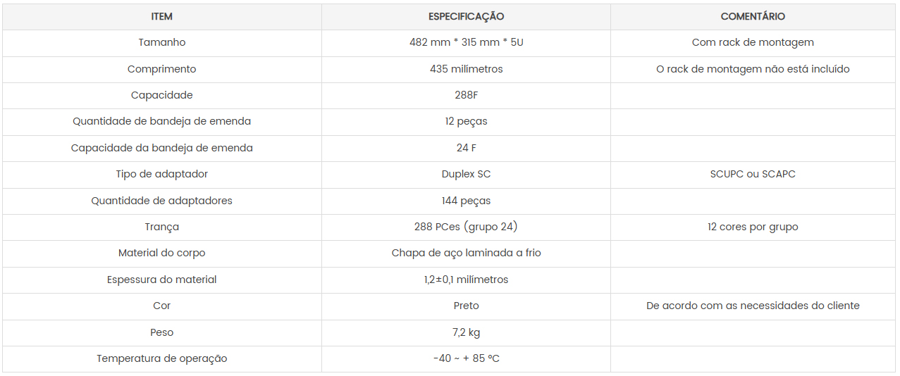 6. A capacidade máxima é de 288 portas SC