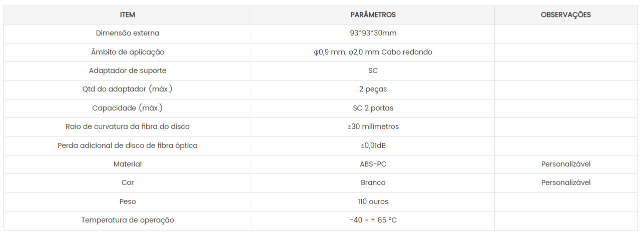 3. Esta caixa de roseta de fibra está em conformidade com os mais recentes padrões e recomendações adotados pelas autoridades reguladoras de telecomunicações. Todas as caixas de fibra são instaladas e implementadas de forma muito intuitiva.