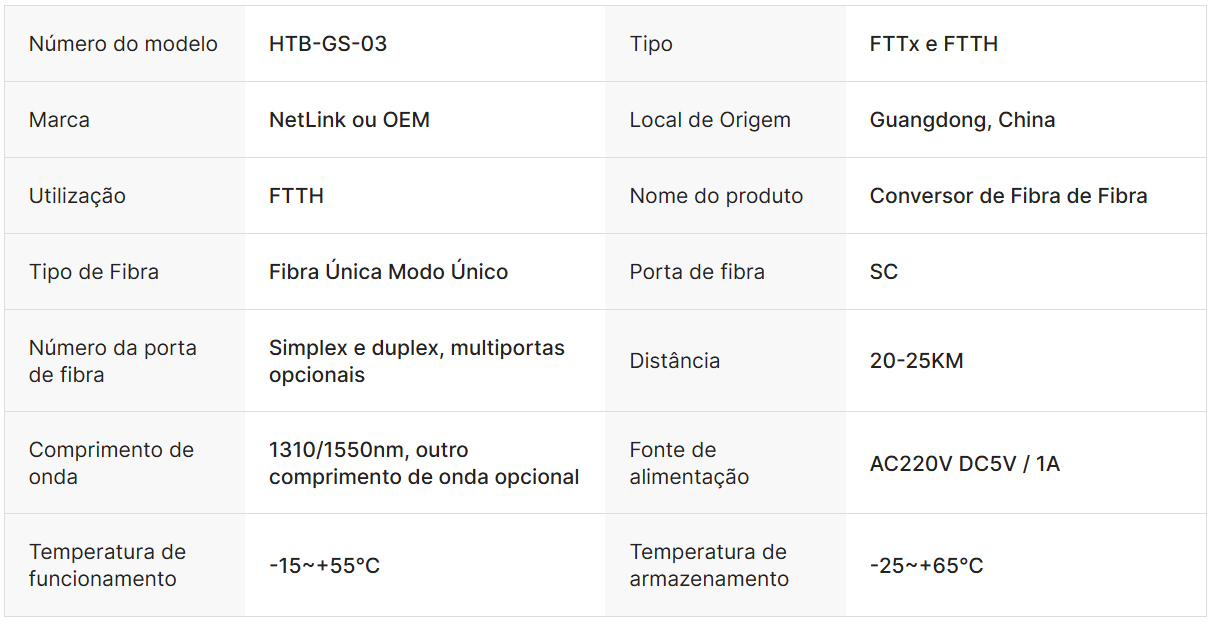 Conversor de Fibra Óptica Ethernet Netlink 10/100M HTB-1100s