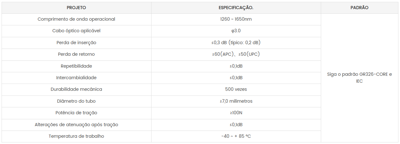 1. Um conector SCAPC foi montado na fábrica e o outro conector SCAPC pode ser montado no local.
