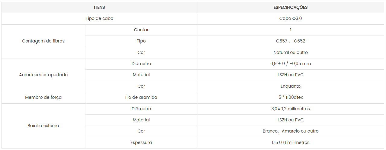 5.0mm SC APC ao cabo de remendo do único modo do SC APC GJYXFJH para as redes de FTTx Especificações técnicas: