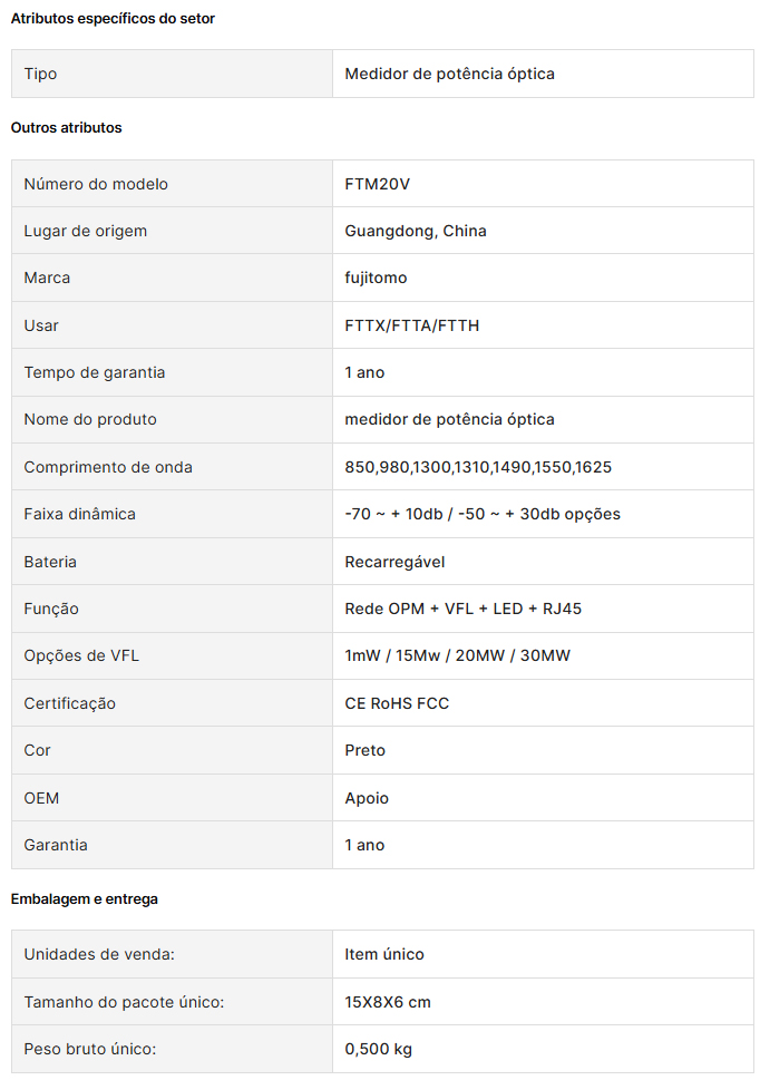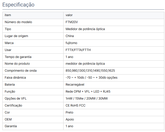 fujitomo 4 em 1 medidor de potência de fibra OPM OPM VFL RJ45 LED testador de medidor de potência óptica multifuncional recarregável -70 ~ + 10dB -50 + 30dB