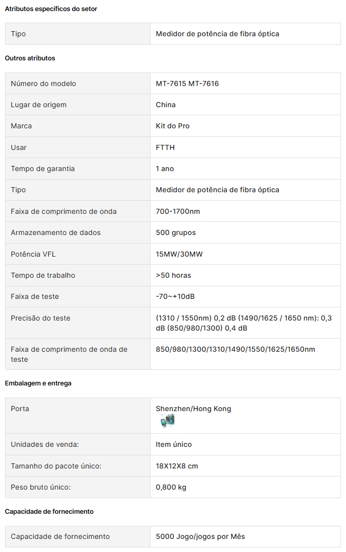 medidor de potência de fibra óptica opm Pro kit MT-7615 MT-7616 MT-761 FTTH preço do medidor de potência óptica
