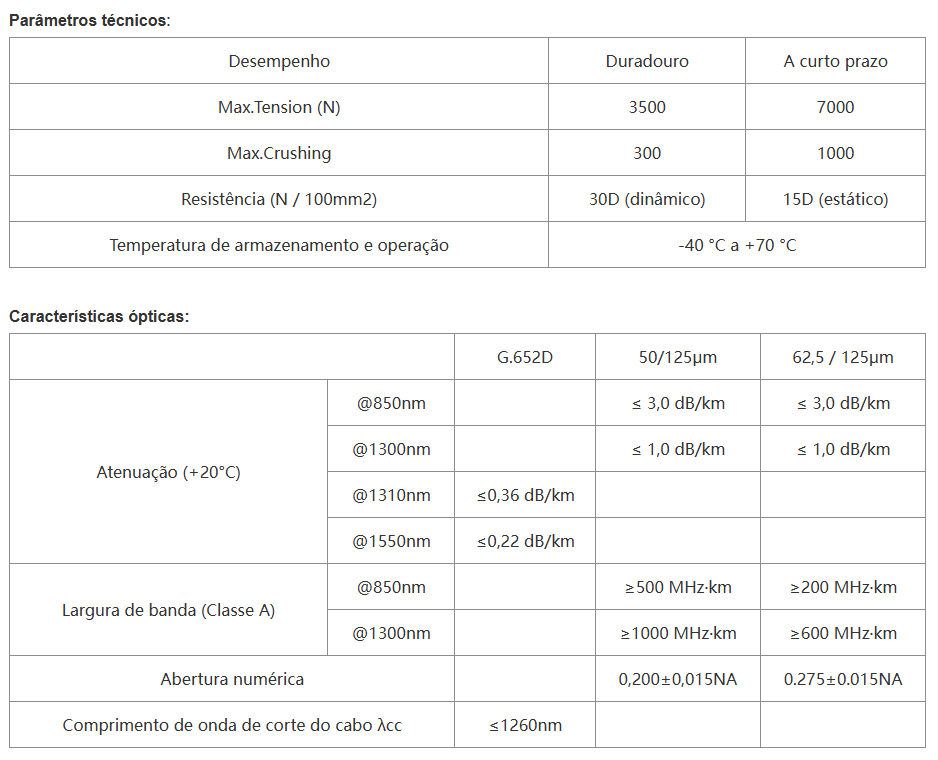 Aplicação: Autoportante aéreo, rede local, rede local, comunicação de rede de longa distância.