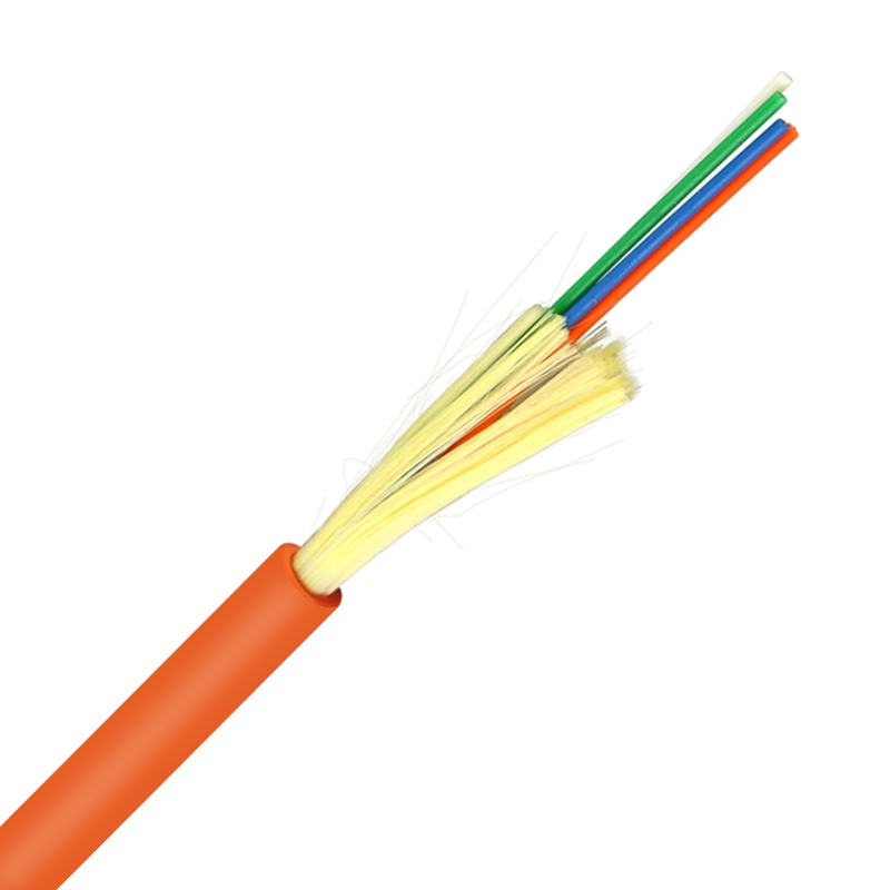 O cabo de distribuição multiuso GJFJV usa várias fibras de buffer apertado retardador de chamas de 900um como meio de comunicação óptica, a fibra de buffer apertado envolta em uma camada de fio de aramida como unidades de membro de força e o cabo é completado com revestimento de pvc ou LSZH (baixa fumaça, zero haiogen, retardador de chamas).