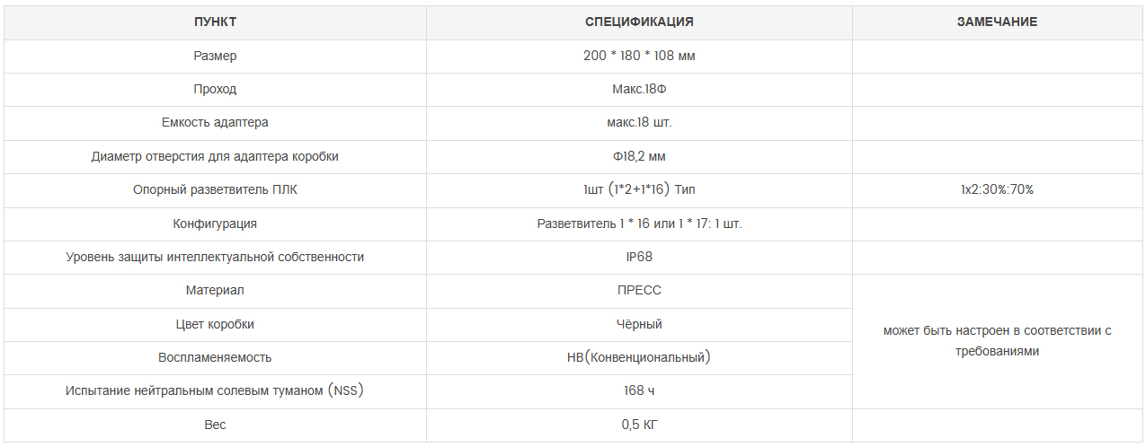 18-портовая предварительно подключенная оптоволоконная распределительная коробка с водонепроницаемым адаптером Особенности: