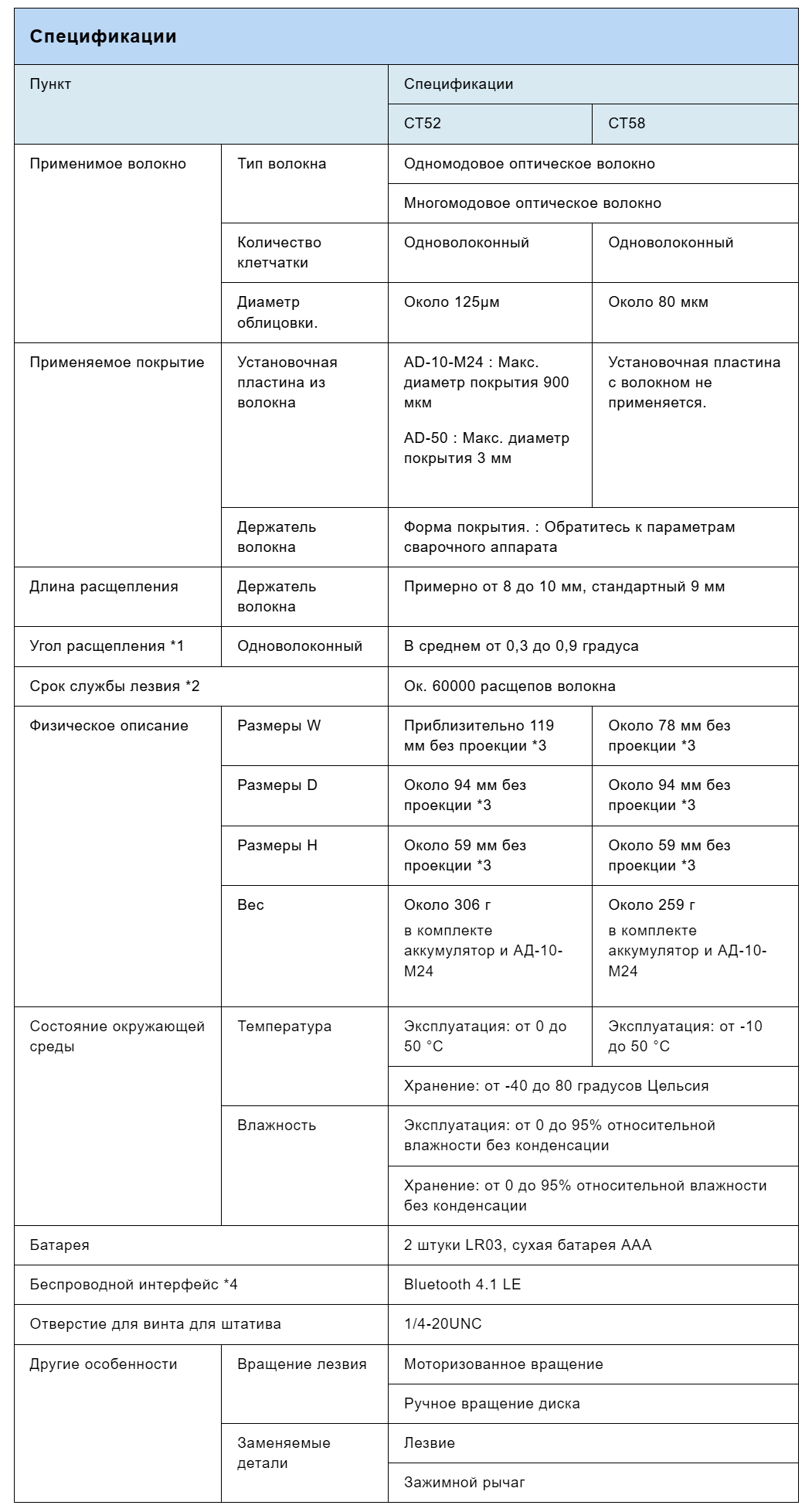 *2: Срок службы лезвия изменяется в зависимости от условий окружающей среды, метода работы и типа расщепляемого волокна.