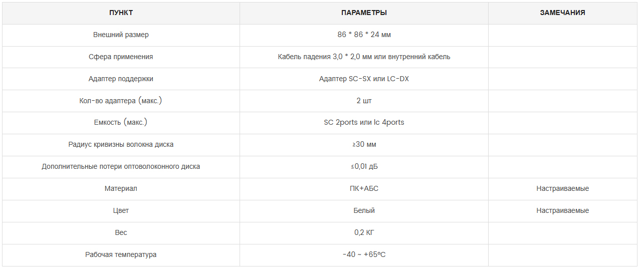 Белая пластиковая 2-портовая оптоволоконная коробка Rossette с адаптером SC Технические характеристики: