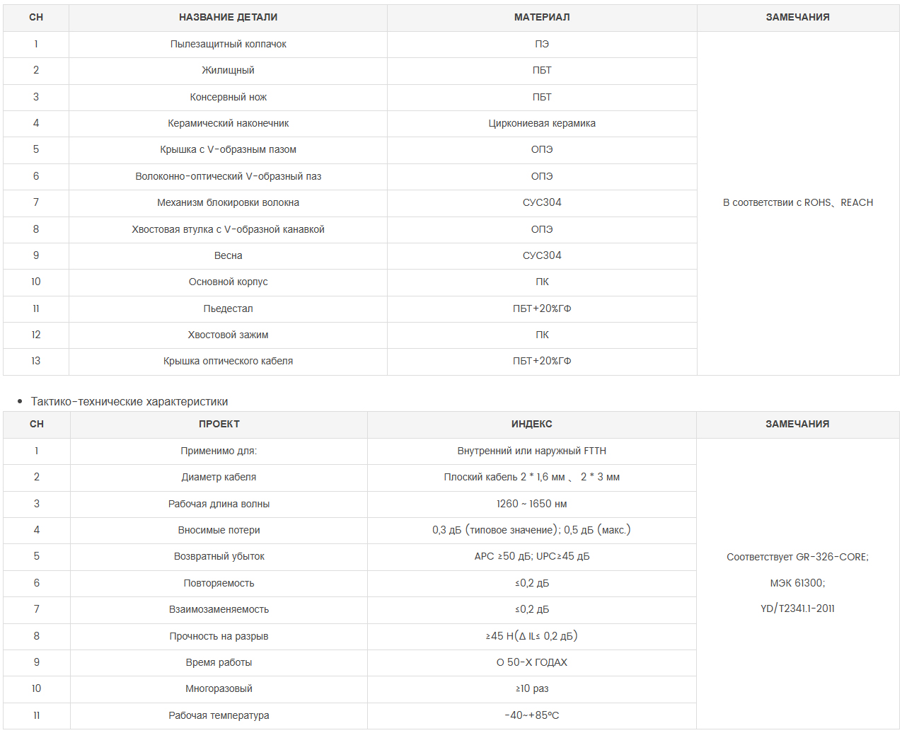 Сертифицированный ANATEL оптоволоконный оптоволоконный быстрый разъем для оптоволокна до дома (FTTH) Технические характеристики: