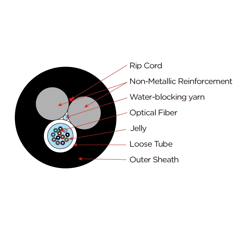 Cable de fibra óptica aéreo ASU de 12 núcleos de modo único Autoportante Cable de fibra óptica ASU Mini Adss Span Características: