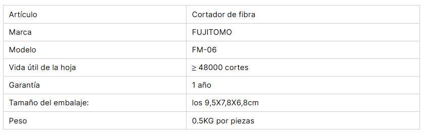 Es un cortador de fibra óptica multipropósito, el producto utiliza los 24 puntos de corte y tiene una vida útil más larga. La cortadora de alta