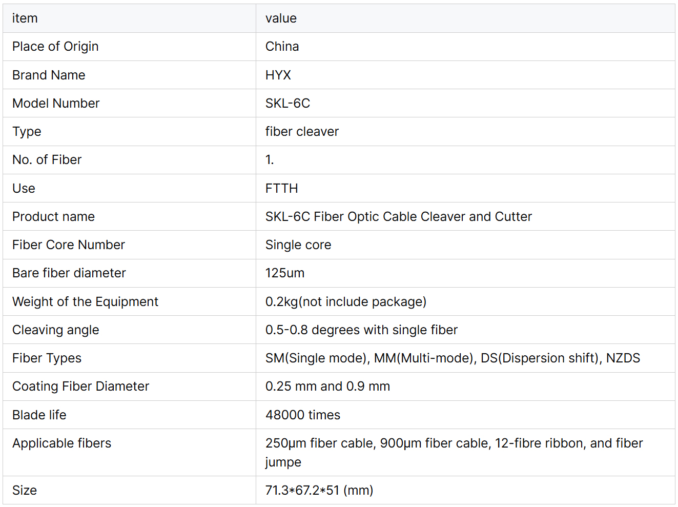 El cuchillo de fibra de alta precisión SKL-6C es un instrumento para corte de fibras de alta precisión que adopta tecnología surcoreana y es adecuado para uniones en frío y fusión en caliente.