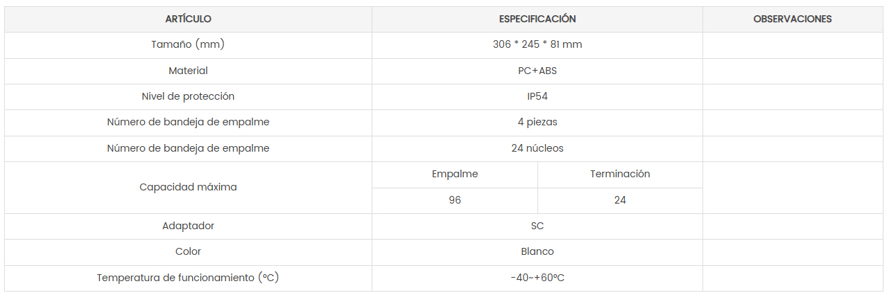Caja de distribución de fibra óptica de 24 núcleos para empalmes, parches, componentes pasivos