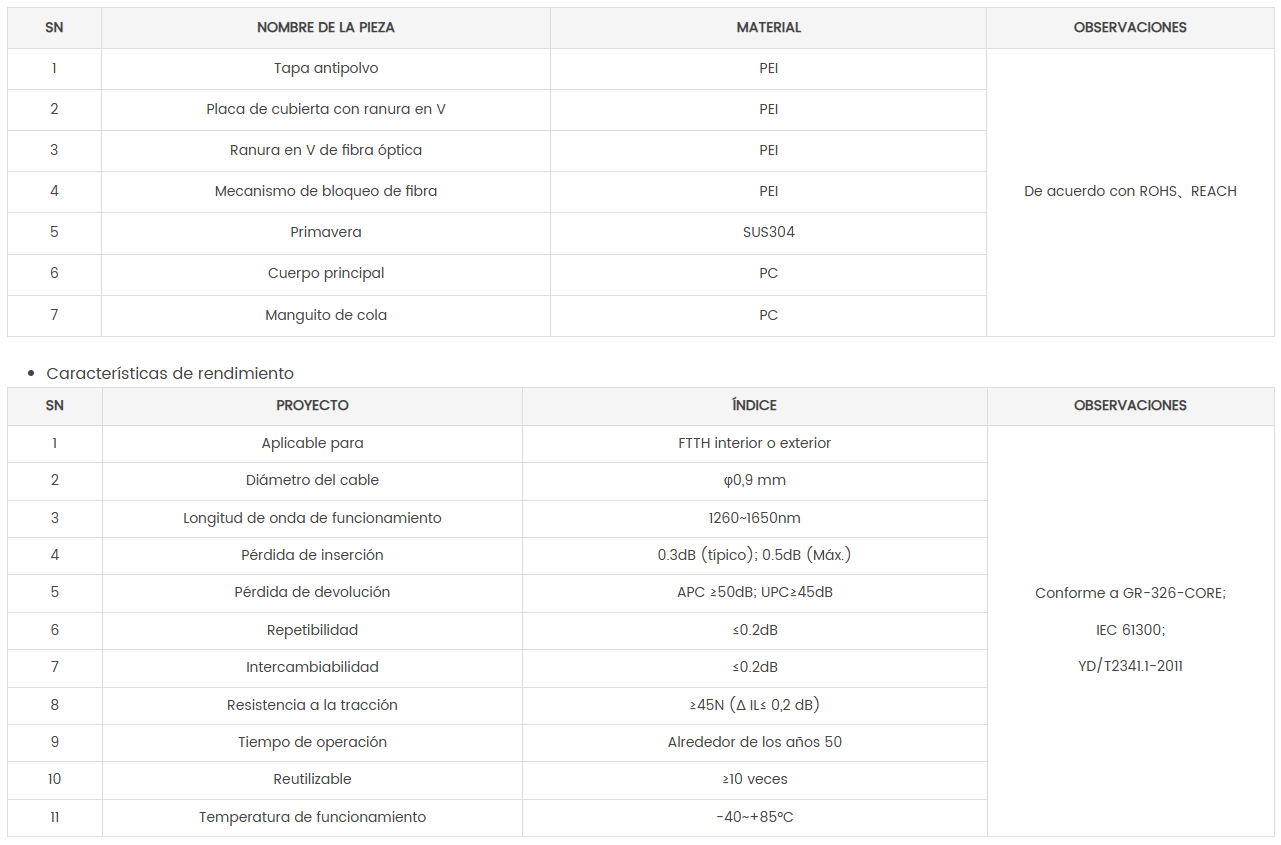 Conector cableable de campo de montaje rápido Conector LC de fibra óptica confiable de 38 mm Especificacionestécnicas S: