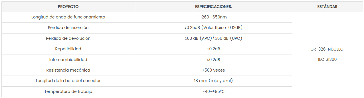 Cable de conexión de φ5.0 mm con conector SC APC para instrumento de prueba óptico Características: