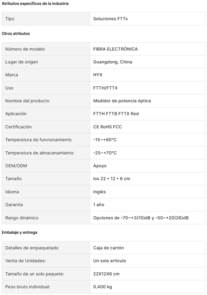 El medidor de potencia óptica de mano es un instrumento portátil duradero y de precisión diseñado específicamente para la instalación, operación y mantenimiento de fibra óptica. Con una forma compacta, se puede seleccionar la pantalla de fondo y la función de apagado automático del interruptor. Rango de prueba de potencia óptica ultra amplio. La precisión de la prueba precisa y la función de autocalibración del usuario y el diseño de interfaz multipropósito, mientras que el índice lineal (mW) y el índice no lineal (dBm) se muestran en la misma pantalla.