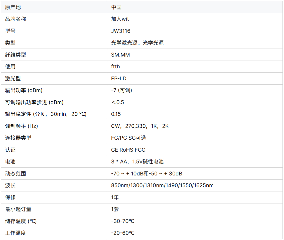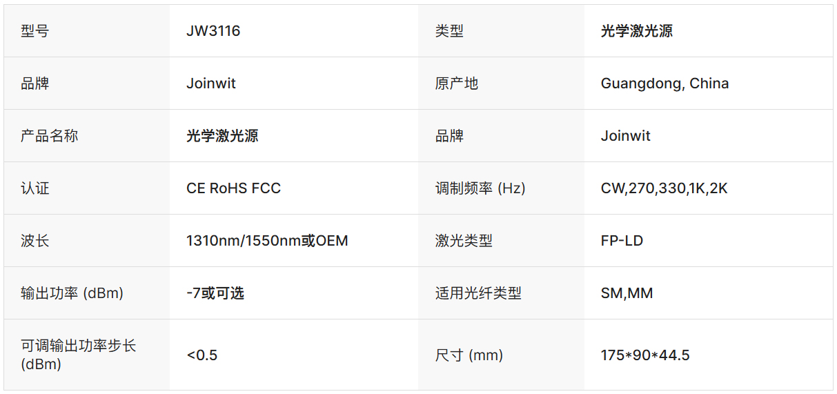 Joinwit JW3116光学激光光源1310/1550nm OLS JW3116