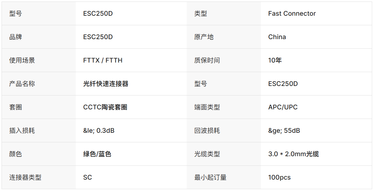 FTTH ESC250D SC/APC SC/UPC单模光纤快速现场组装Fibra Optica Monomodo Rapido快速连接器ESC250D