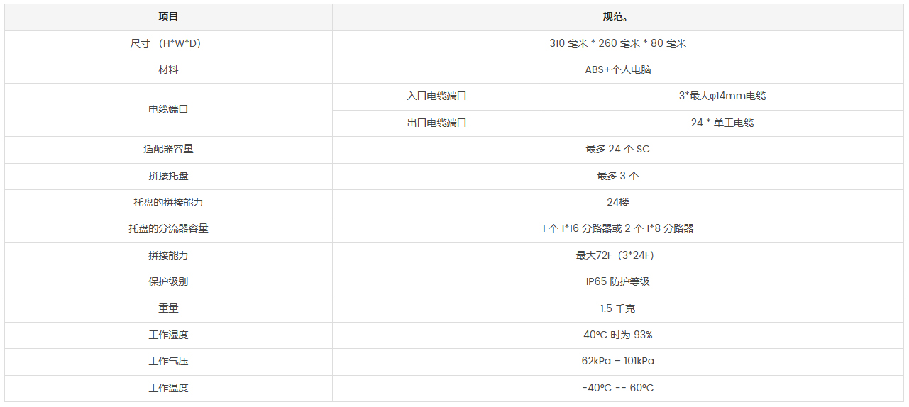 连接和管理 24 端口光纤分线盒,带 ABS PC 材料应用: