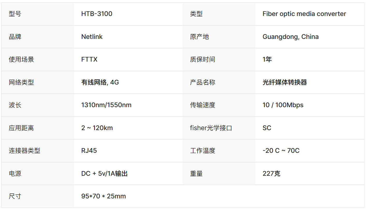 以太网媒体转换器2端口4 RJ45 A/B网联HTB-3100媒体转换器10/100 MB 25km