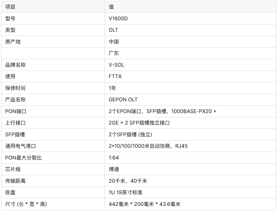 V-Sol OLT V1600D 2GE + 2 SFP插槽独立接口2*10/100/1000M自动协商RJ45光纤网络设备
