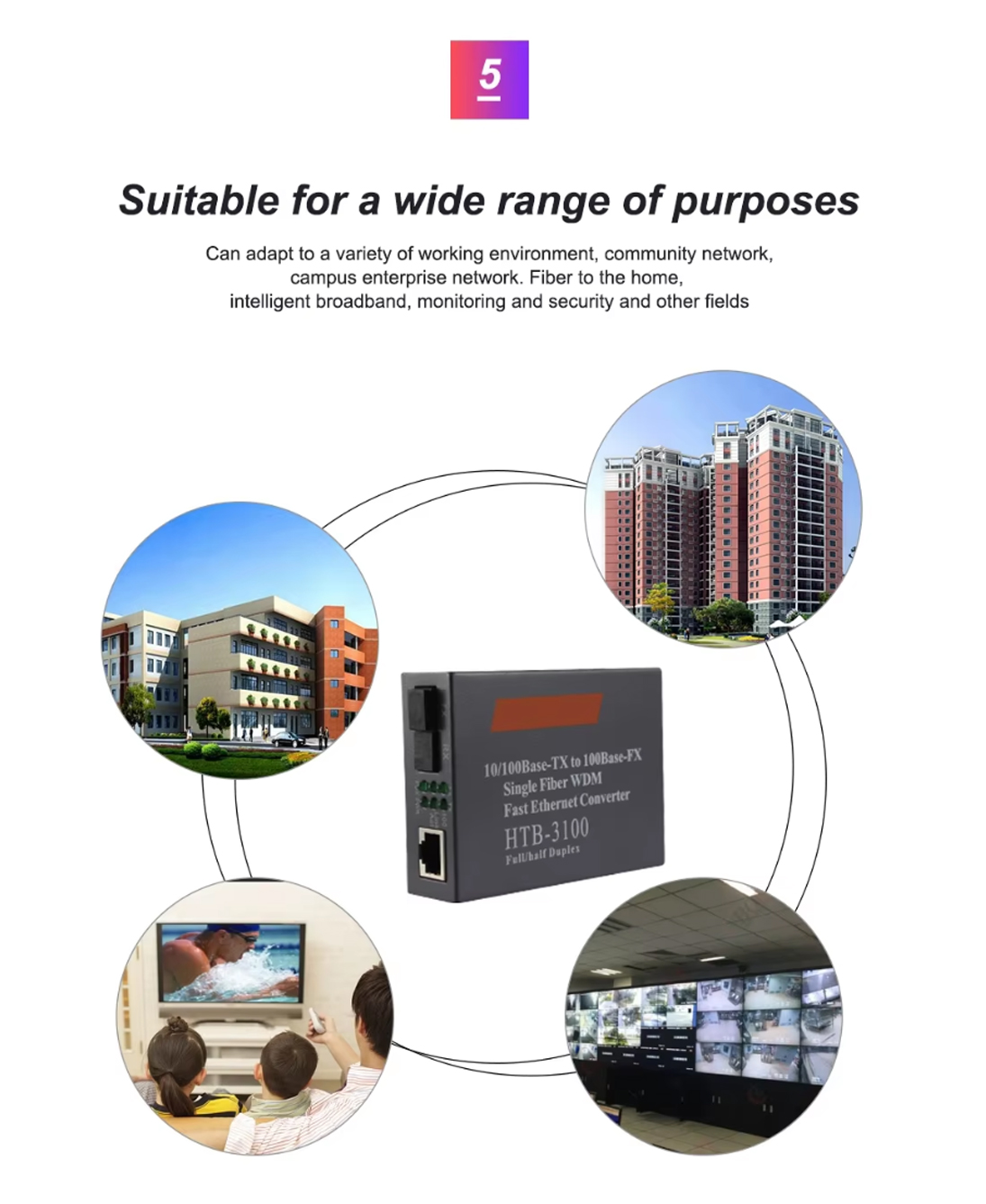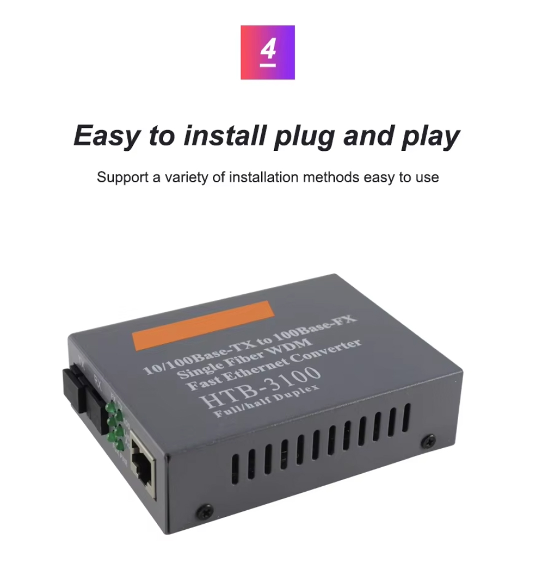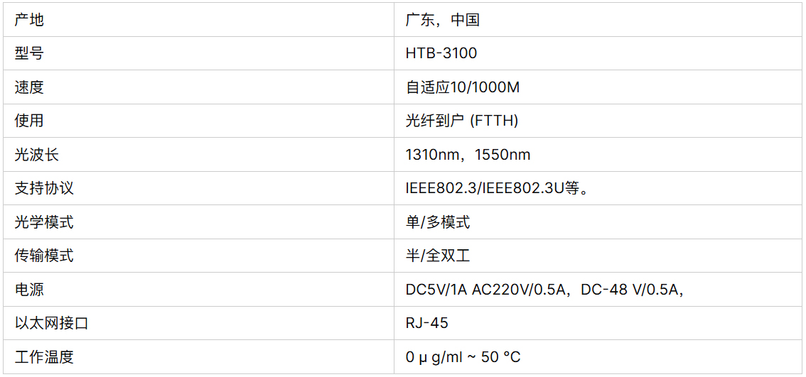 配备的自动协商功能使媒体转换器能够以10或100Mbps的铜以太网或快速以太网和100Mbps光纤运行。此转换符合IEEE802.3和IEEE802.3u标准与两种不同的网络连接介质,10/100Base -TX和100Base-FX。通过交换和存储转发技术实现数据传输。
