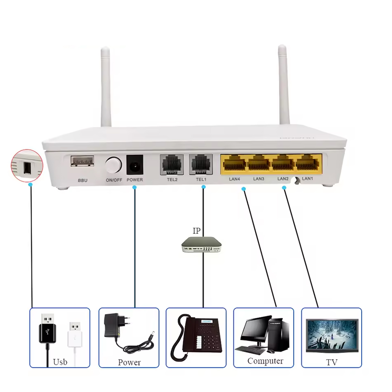 华为hg8245 hgu调制解调器4ge 2 pots电话端口