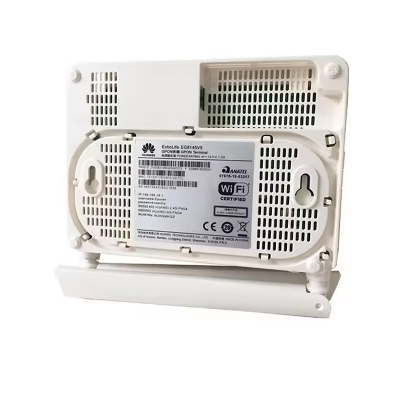 华为EG8145V5是家族EG8145V5双频的新ONT,具有WIFI 802.11 a / n / ac (5G)。它有2个外部天线,在两个波段都是MIMO 2*2。路由型光网络终端 (ONT) -华为全光接入解决方案的组成部分-使用具有千兆能力的无源光网络 (GPON) 技术,为用户实现超宽带接入。具有高转发性能,可确保语音,数据和高清 (HD) 视频服务的一致用户体验,以及面向未来的服务支持能力,EG8145V5帮助企业构建部署在下一代园区的全光接入解决方案。