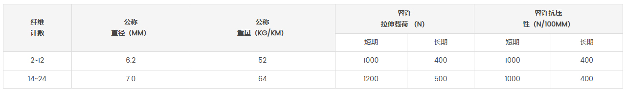 Carefiber 的非铠装单管光缆,光纤放置在松散的缓冲管中。电缆芯线用果冻保护,以防止水侵入和迁移,并覆盖有黑色聚乙烯外护套。两根嵌入式 FRP 或金属线提供所需的张力。