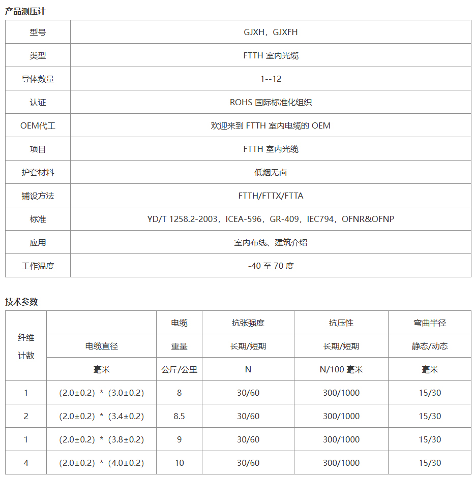 特殊的低弯曲灵敏度光纤提供高带宽和优异的通信传输性能;